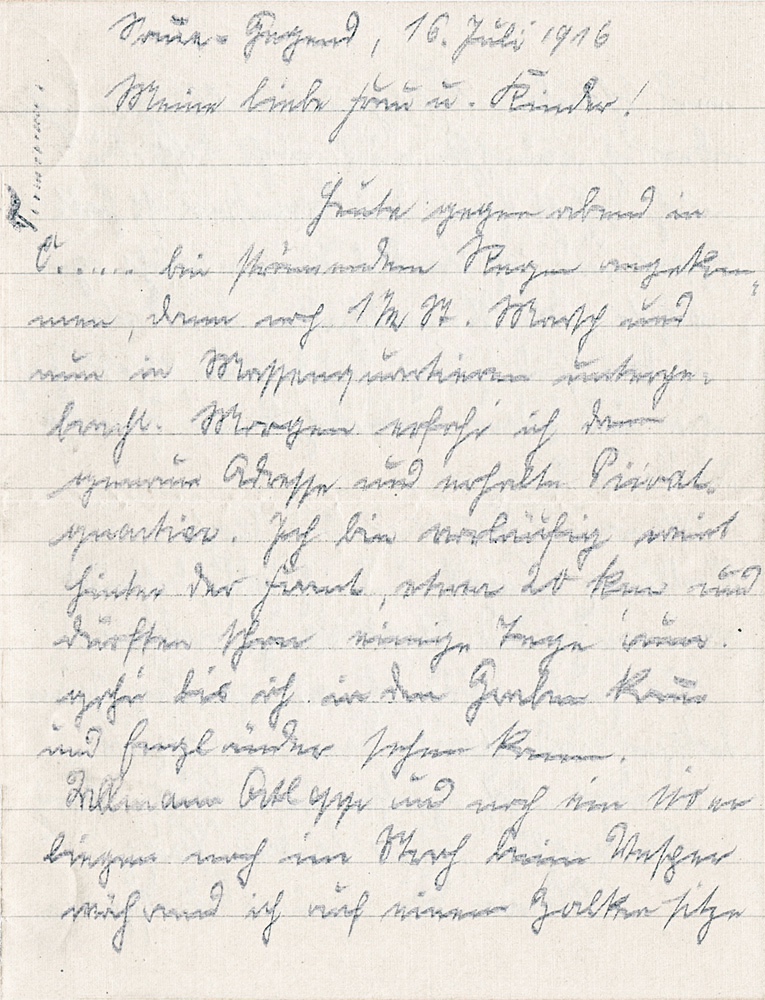 Die umstehende Adresse genügt nicht. Ihr könnt mir also noch nicht schreiben, ehe ich Regiment und Regimentsnummer angebe.