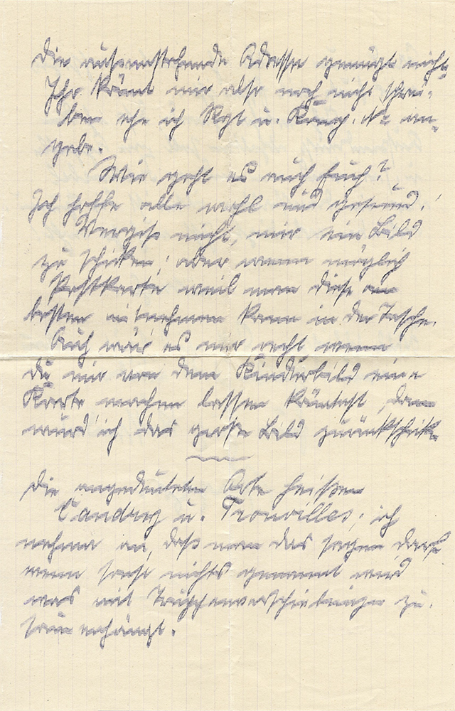 Wie ich höre, bleib ich noch längere Zeit hinter der Front und soll das Regiment vermutlich dorthin kommen wo Karl zuletzt war. Genaueres kann ich nicht sagen und auch noch keine Adresse angeben, weil ich noch nicht der Kompanie zugeteilt bin.
