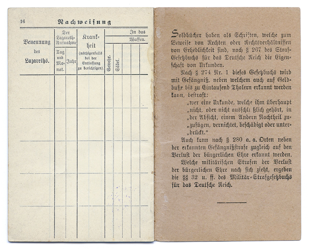 Bilddokumente: Orden (der Karl-Friedrich-Orden war mit einer lebenslangen monatlichen Zahlung honoriert), Gestellungsbefehl, Soldbuch, Angriffsplan